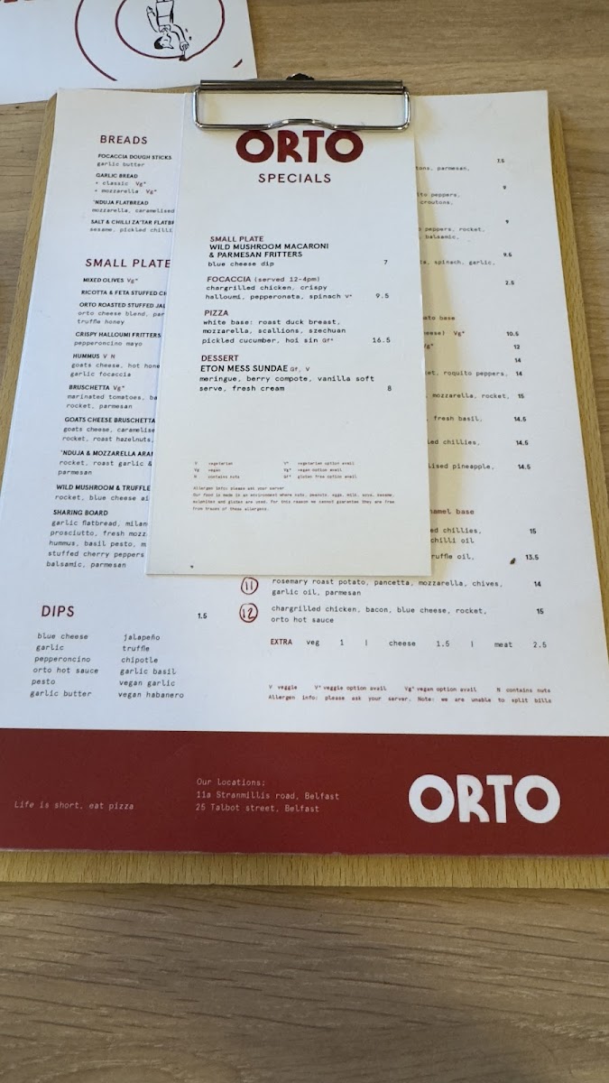 Ideally located at 23 Talbot St in Belfast, Orto Pizza is a culinary gem that masterfully blends traditional Italian flavors with innovative twists. With a focus on high-quality ingredients, their pizzas boast light, soft dough characteristic of authentic Neapolitan style. Popular choices include the Nduja, Mozzarella, and Hot Honey pizza, which has garnered rave reviews for its bold flavor combinations.